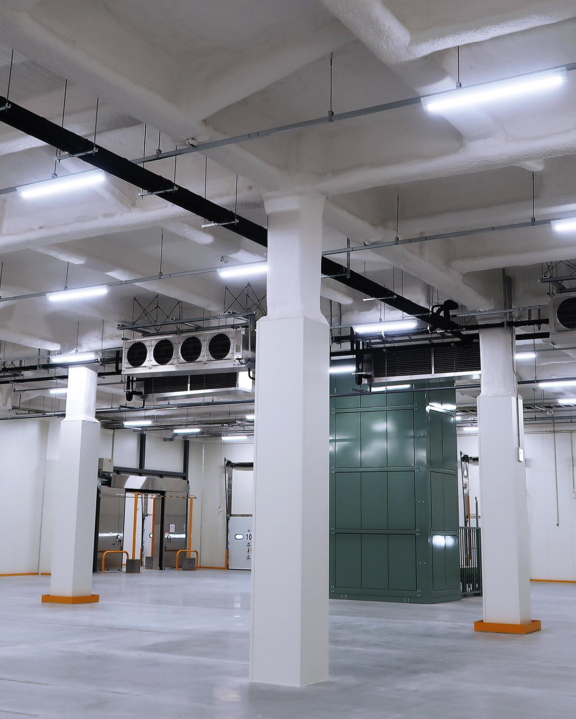 ライフスタイルの変化やフードロス問題、倉庫自体の不足や老朽化が進んでいる現在、大型低温倉庫の必要性は益々高まっています。当社はコア事業として培ってきた冷凍冷蔵設備に関する豊富な経験とノウハウを活かし、低温(定温)型物流倉庫や食品加工センターなどの設計、施工をサポートします。省エネルギー、効率的な動線